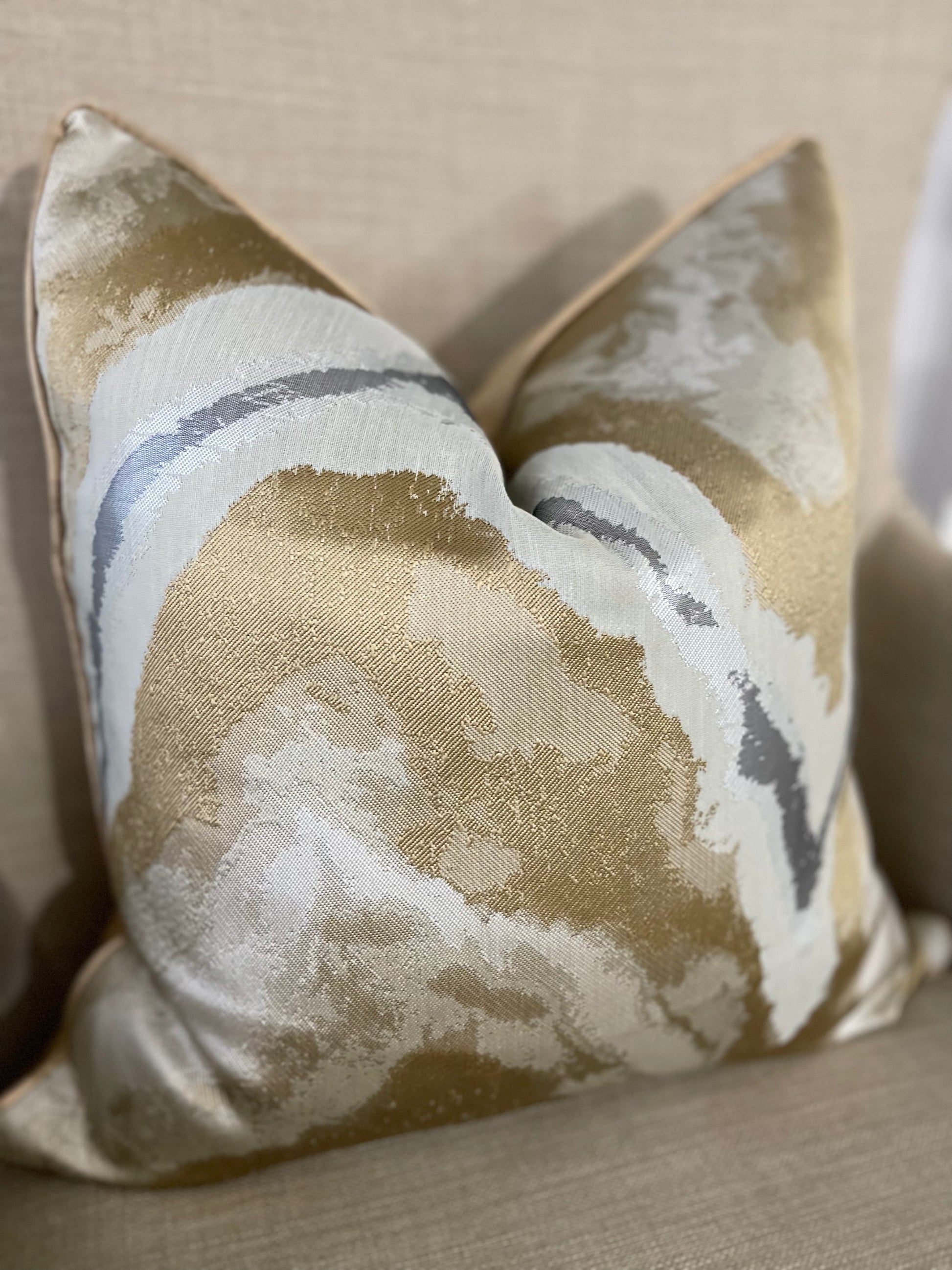 Luxury jacquard satin high quality modern pillow cover with gold satin corded edge finish.